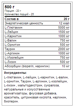 Комплекс миттєво забезпечить організм зарядом енергії на тривалий час, запустить синтез білка, поліпшить набір м'язової маси, захистить м'язи від катаболізму, збільшить витривалість організму і прискорить швидке відновлення після інтенсивних тренувань.