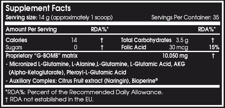 Формула містить 8 основних інгредієнтів: L-глютамін, L-аланін, фолієва кислота та інші.