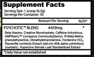 Інноваційна новинка Insane Labz Psychotic — це найбожевільніший стимулятор на ринку спортивного харчування! Дає потужний викид енергії, фокусування й ейфорії упродовж дуже тривалого часу! Може поєднуватися з будь-яким передтреном або пампилкою. Має використовуватися тільки досвідченими користувачами!