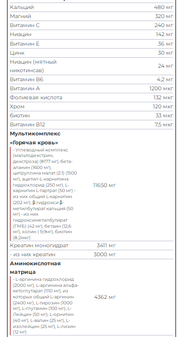 Hot Blood No-Stim від якісного бренду Scitec Nutrition З однією з найбільш досліджених форм креатину. Не просто переосмислення. Не просто оновлений. Зробили його доступним для людей з нестерпністю кофеїну! Вправи – це не лише робота. Вправи – це весело. Нам подобається, як кров тече по наших венах, як незрівнянний світ заліза засмоктує нас, і ми просто продовжуємо тиснути, доки повністю не видихнемося. Це почуття рухає нами вперед! Ви даєте самовідданість, рішучість. Ми даруємо вам гарячу кров! Однак, на жаль, Hot Blood Hardcore підходить не всім, оскільки стимулятори, що містяться в ньому, унеможливлюють його вживання тими, хто до них чутливий. До сьогодення!