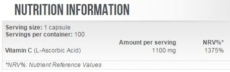 Препарат містить в одній капсулі 1100 мг аскорбінової кислоти. Прийом вітаміну С забезпечить нормалізацію окислювально – відновних процесів в організмі, сприяє виробленню колагену, поліпшення здоров'я суглобів і зв'язок, підвищує імунітет.