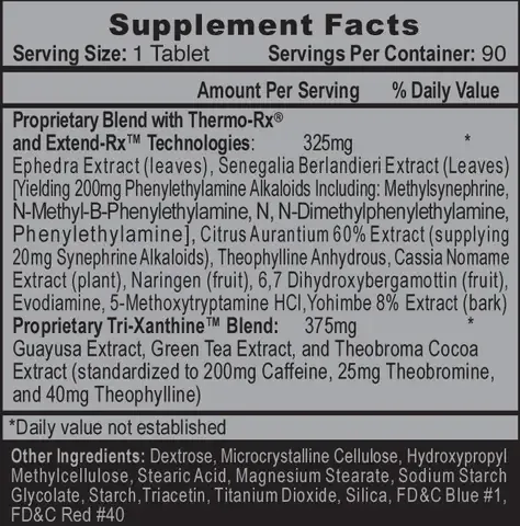 Tri-Xanthine Blend – включает в себя метилксантины (предшественники кофеина), содержащиеся в Зелёном чае, Теобромине и Чай Мате. Обладают сильным стимулирующим действием на ЦНС. Дают продолжительную энергию, усиливают жиросжигание.
