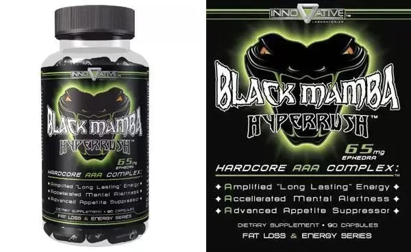 Black Mamba Hyperrush от Innovative labs — мощный жиросжигатель на основе EPH. Содержит кофеин, синефрин, йохимбин и другие термогенные соединения. Благодаря высокой концентрации EPH (65 мг в 1 порции), позволяет оптимизировать работу ЦНС. А значит — существенно ускорить липолиз.